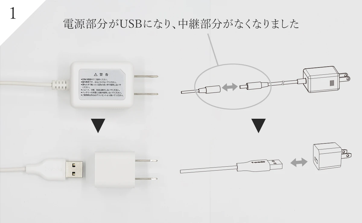 電源部分がUSBになり、中継部分がなくなりました。