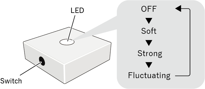 Every time you press the switch button on the side of the product, the LED light mode changes as shown below.
