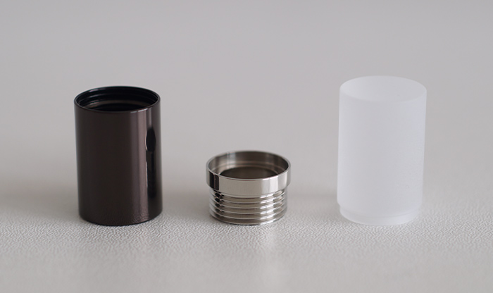 すべての部品はそれぞれひとつのかたまりから削り出されていますので、持ってみると意外な重量感に驚かれるかもしれません。