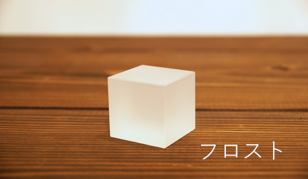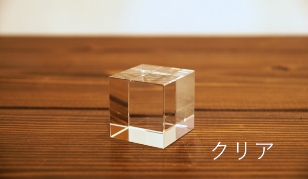 4cm角のガラスキューブです。クリアまたはフロストから。